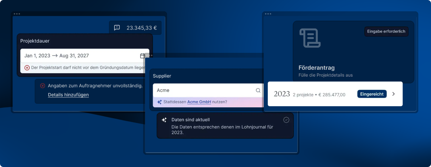 Bevor wir loslegen, prüfen wir: Ist dein BSFZ-Bescheid noch aktuell? Gibt es verbleibende förderfähige Mittel für das Projekt? Ist ein geänderter Antrag beim BSFZ notwendig? Gibt es bilanzielle Risikosituationen, die frühzeitig adressiert werden müssen?