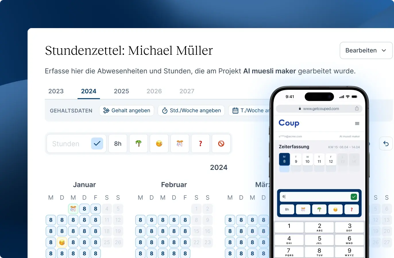 Vollzugang zur Coup-Plattform inklusive Zeiterfassung, Dokumenten-Upload und strukturierter Antragsvorbereitung, mit klarer Guidance auf jedem Schritt.
