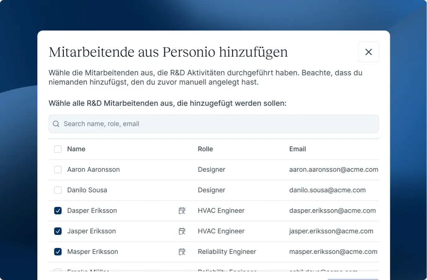- Smarte HR-Integrationen: Verbinde dein HR-System (z. B. Personio) in Sekunden und importiere Daten direkt.