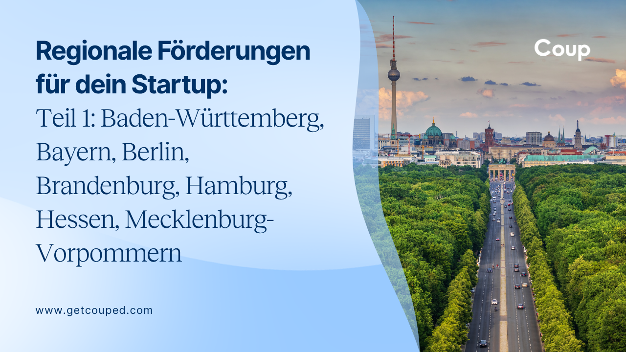 Erfahre mehr zu regionalen Fördermitteln für Startups in Baden-Württemberg, Bayern, Berlin, Brandenburg, Hamburg, Hessen und Mecklenburg-Vorpommern.
