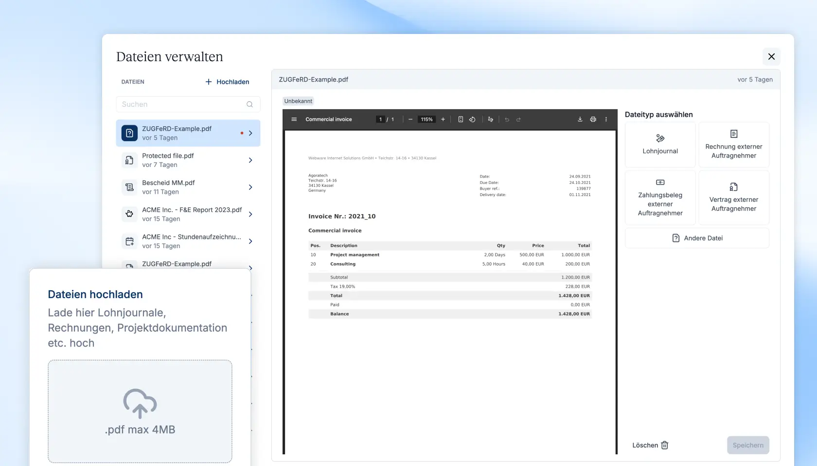 Und die dazugehörige, zentrale Dateien-Verwaltung vereinfacht das Bearbeiten und Sichten aller Dateien - KI-gestützt und intuitiv bedienbar.